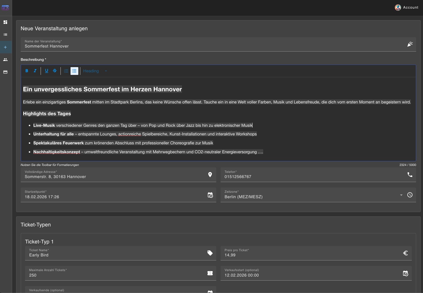 Unsere Mission ist es, Veranstaltern aller Größenordnungen – von kleinen lokalen Events bis hin zu großen Festivals – die Werkzeuge zu geben, die sie für erfolgreiches Ticket-Management benötigen.
